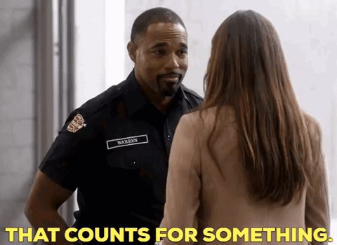 Ben Warren (Jason Winston George) from Station 19 speaks to a woman, emphasizing 'That Counts For Something.'