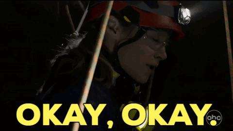 Maya Bishop from Station 19, played by Danielle Savre, says "Okay, Okay" while wearing a helmet and holding a rope.