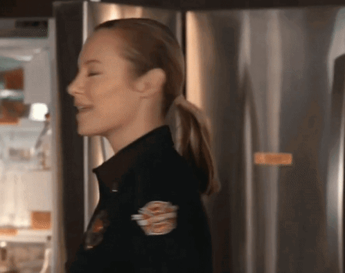 Maya Bishop (Danielle Savre) from Station 19 opens a stainless steel refrigerator, looking for food.