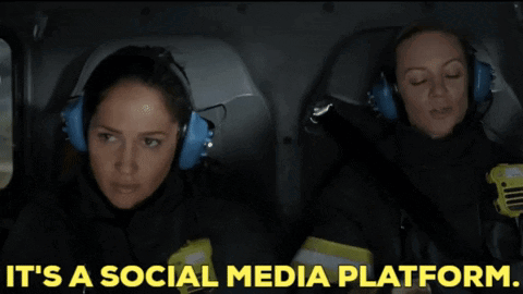 Station 19's Maya Bishop and another woman in a vehicle, with the text 'It's a social media platform.'