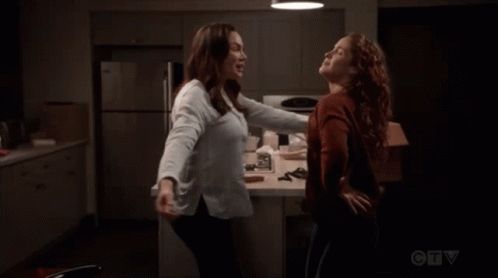 Andy Herrera (Jaina Lee Ortiz) and Elena Herrera (Patricia De Leon) from Station19 share a joyful salsa dance.