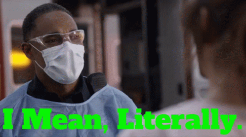 Ben Warren from Station 19, played by Jason Winston George, wearing a mask and goggles, with 'I Mean, Literally.' caption.