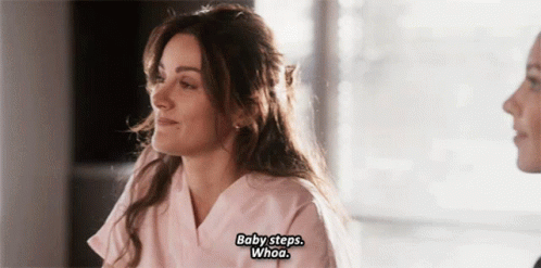 Carina Deluca, played by Stefania Spampinato, says 'Baby steps. Whoa.' in a scene from Station19.