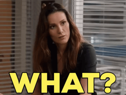 Carina Deluca from Station19 looks confused and surprised, with the word 'WHAT?' overlaid.