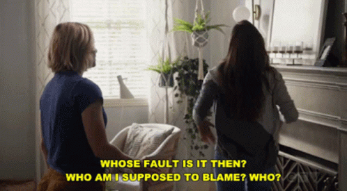 Carina Deluca, played by Stefania Spampinato, in a tense moment from Station19, asking 'Whose fault is it then?'