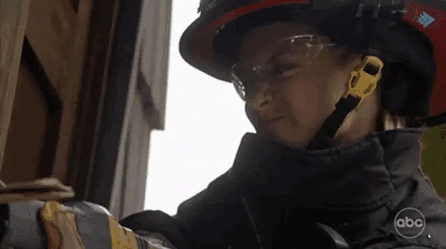 Jack Gibson (Grey Damon) from Station 19 declares, "We're Firefighters," standing in a black shirt.