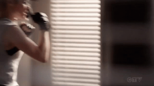 Maya Bishop from Station19, played by Danielle Savre, intensely training with a punching bag in a gym.