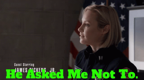 Station19's Maya Bishop (Danielle Savre) in uniform, with the text 'He Asked Me Not To' displayed.