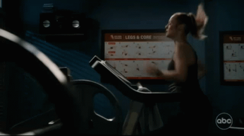 Maya Bishop (Danielle Savre) from Station19 running on a treadmill in a gym, working out.