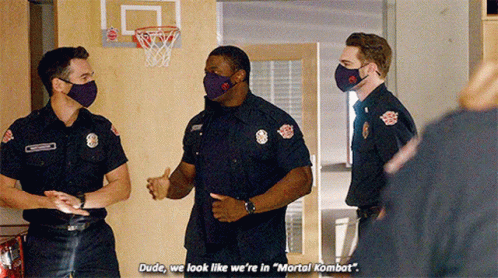 Station 19 firefighters Dean Miller, Travis Montgomery, and Jack Gibson joke about their masks resembling Mortal Kombat characters.