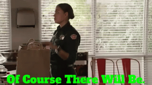 Station19's Vic Hughes, played by Barrett Doss, holds a bag in a kitchen with the caption 'Of Course There Will Be'.