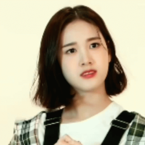 Stayc J (Jang Yeeun) shows a range of confused and funny reactions, wearing a plaid shirt and overalls.