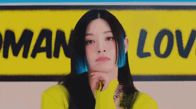 Stayc Sumin in a pink sweater, engrossed in her phone, reacting to content.
