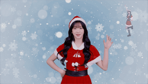 a girl wearing a santa hat and a red and white outfit