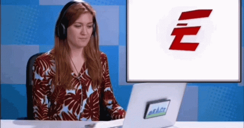Steebz Erin Steeby laughs hysterically while reacting to an 'EEEEEE' meme, parodying a video game logo.