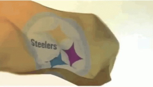 A close-up shot of the Pittsburgh Steelers flag waving gently, featuring the team's iconic logo with yellow, red, and blue diamonds.
