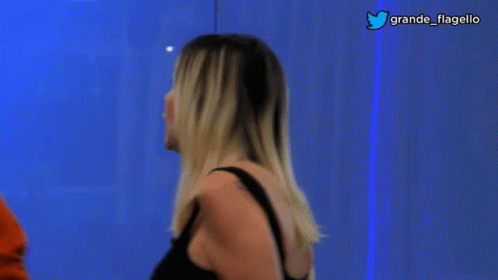 Stefania Orlando from GFVIP is seen with the Italian phrase 'È un disco rotto' (It's a broken record).