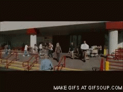 Will Ferrell as Brennan Huff in Step Brothers throws a giant roll of toilet paper outside a store.