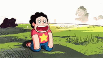 Steven Universe reacts with his iconic star eyes, showing amazement.