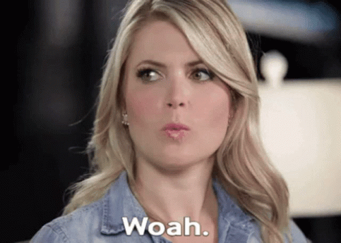 Stevie Nelson, from Live Prude Girls, makes an amazed "Woah" expression while looking off-camera.