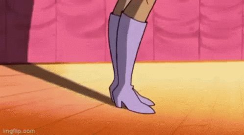 Daphne Blake from Scooby-Doo strikes a pose in her purple dress and boots, then gives a stylish wink.