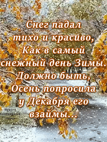 A beautiful autumn landscape with falling snow, accompanied by a poetic reflection on winter's early arrival.
