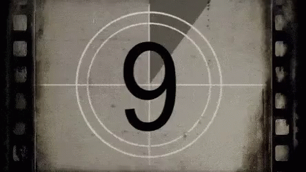 Classic film reel countdown from nine to zero, featuring a vintage, grainy aesthetic for a movie intro.