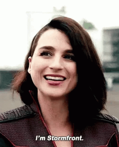 Stormfront from The Boys smiles and introduces herself, saying "I'm Stormfront."