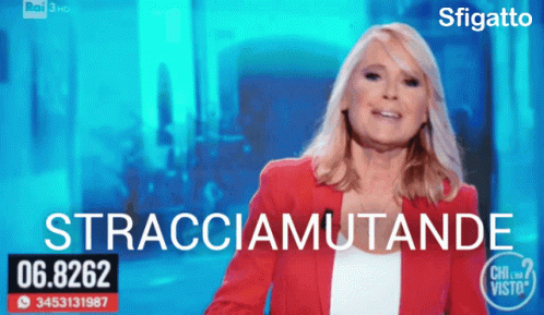 Federica Sciarelli on "Chi l'ha visto?" with the text "STRACCIAMUTANDE" and "Sfigatto" on screen.