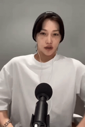 Stray Kids' Felix, wearing a hat and headphones, performs a sassy hip roll in front of a microphone.
