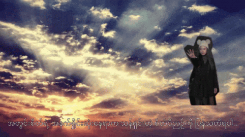 Actress Su Htat stands against a dramatic cloudy sky, with Burmese text at the bottom.
