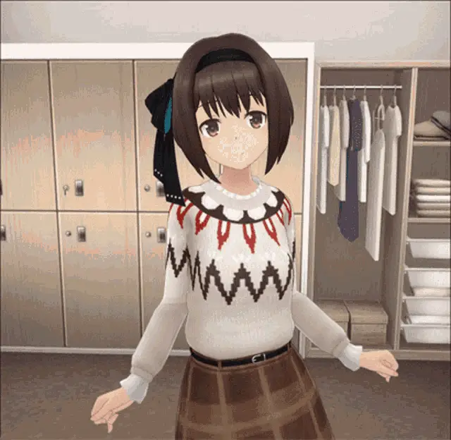 Suga Itsuri, the character from Alice Gear Aegis, performs a lively dance routine in a white and teal outfit.