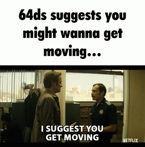 A police officer suggests getting moving, echoing the 64ds message from a Netflix ad.