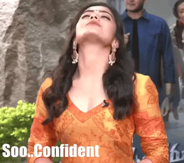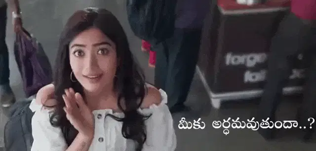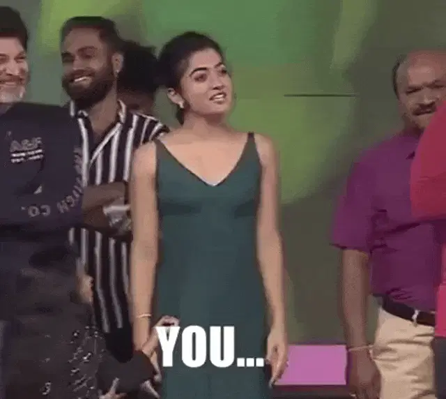 Rashmika Mandanna from Sulthan, wearing a yellow saree and making a funny expression.