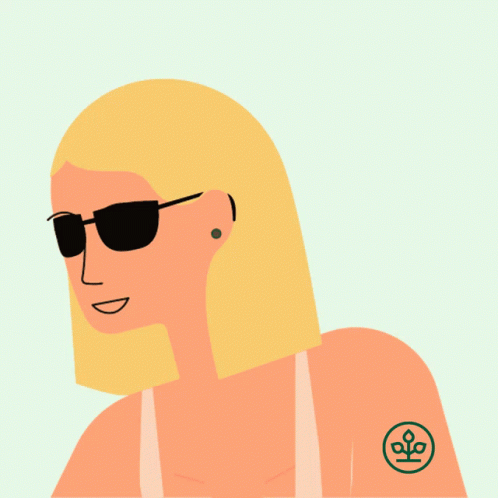 Animated woman enjoying summer, wearing sunglasses, with AOK Niedersachsen branding.