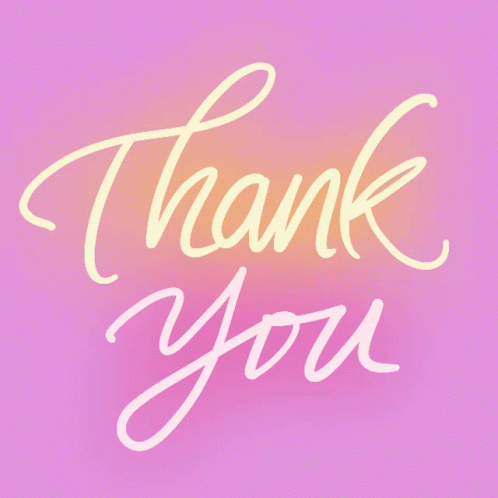Animated 'Thank you' message with glowing text and sparkling effects on a vibrant purple background.