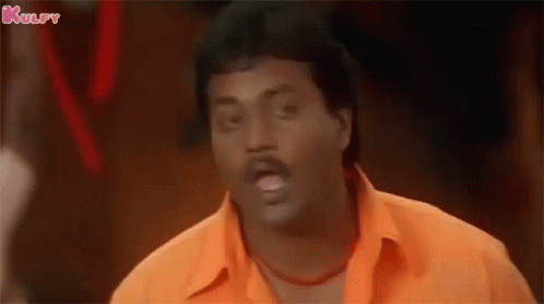 Sunil from Nuvvu Leka Nenu Lenu makes a funny, exaggerated face while wearing an orange shirt.