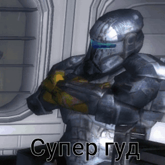 Video game character Scorch from Star Wars: Republic Commando with the phrase 'Супер гуд' (Super good).