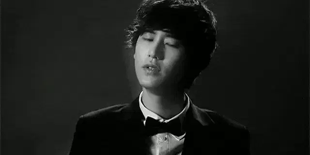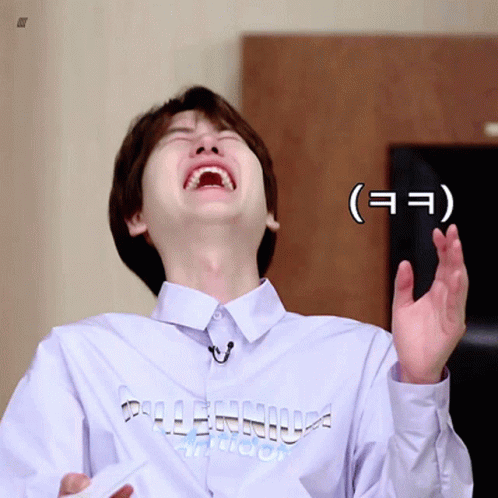 Super Junior's Kyuhyun bursts into hilarious laughter, holding a card and clapping with amusement.