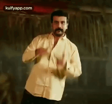 Ramesh Pisharody shows off a super dance move, gesturing energetically with his hands.