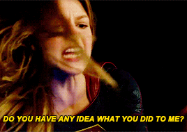 Supergirl (Melissa Benoist) confronts someone with an intense 'Do you have any idea what you did to me?'