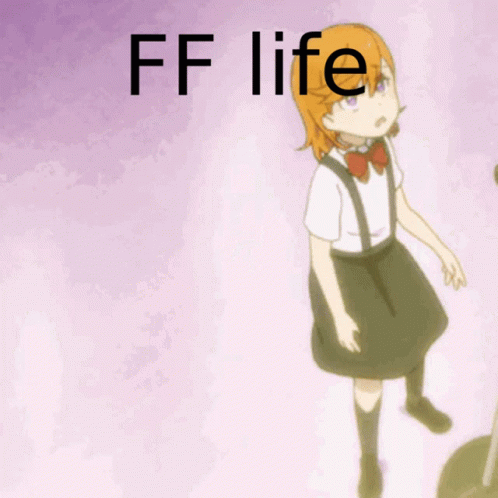 Kanon Shibuya from Love Live Superstar falls backward in a light purple setting with 'FF life' text.