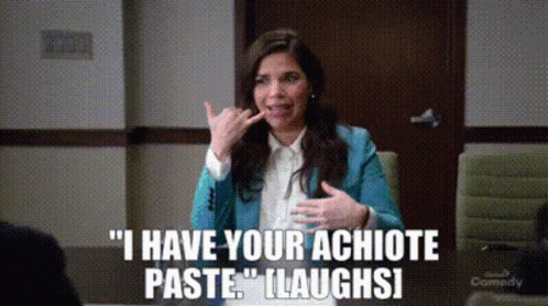 Amy Sosa from Superstore makes a funny face while saying 'I have your achiote paste' on the phone.