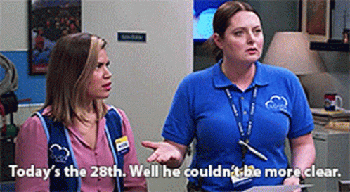Dina Fox (Lauren Ash) from Superstore states 'Today's the 28th. Well he couldn't be more clear.'