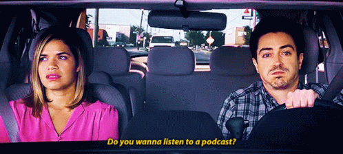 Jonah Simms (Ben Feldman) from Superstore asks a woman in a car if she wants to listen to a podcast.