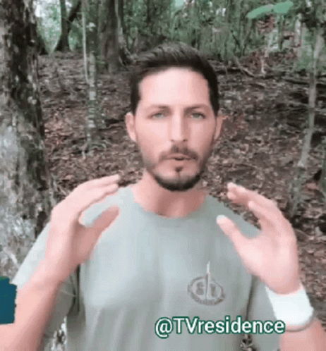 Nyno Vargas from Supervivientes 2020 makes a surprised face, wiping his cheeks in the jungle.