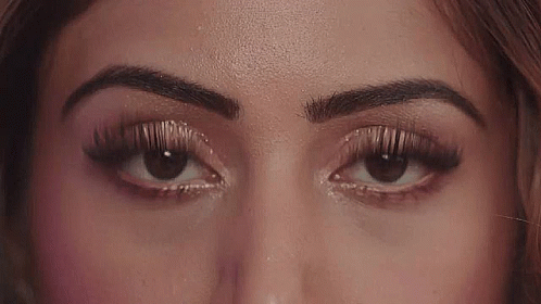 Surbhi Chandna's eyes with glittery makeup open to reveal striking red snake eyes.