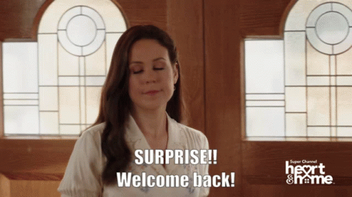 A teacher is greeted with a heartwarming 'Surprise! Welcome back!' by her enthusiastic students.