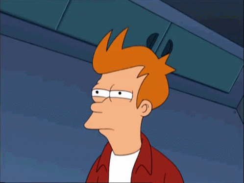 Fry from Futurama makes a suspicious, squinting face, a classic meme expression.