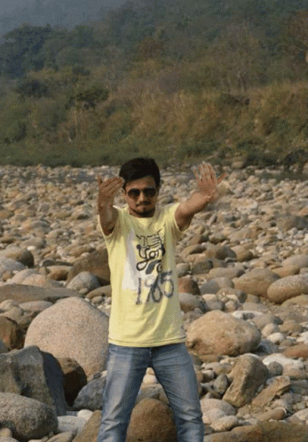 A man makes a 'stop' gesture in a rocky landscape, with 'Ayy Ayy, Suzana aise' and Ludo game graphics.